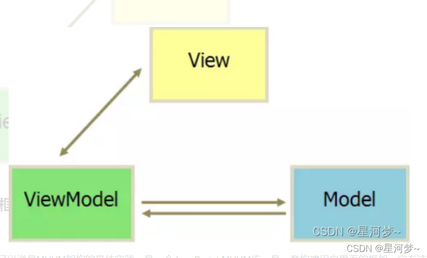 View 和 Model 之间没有直接联系,通过 ViewModel 进行交互(即双向数据绑定)。 View 的变化可以引起 Model 的变化,Model 的变化也可以引起 View 变化(类似于浅拷贝)。